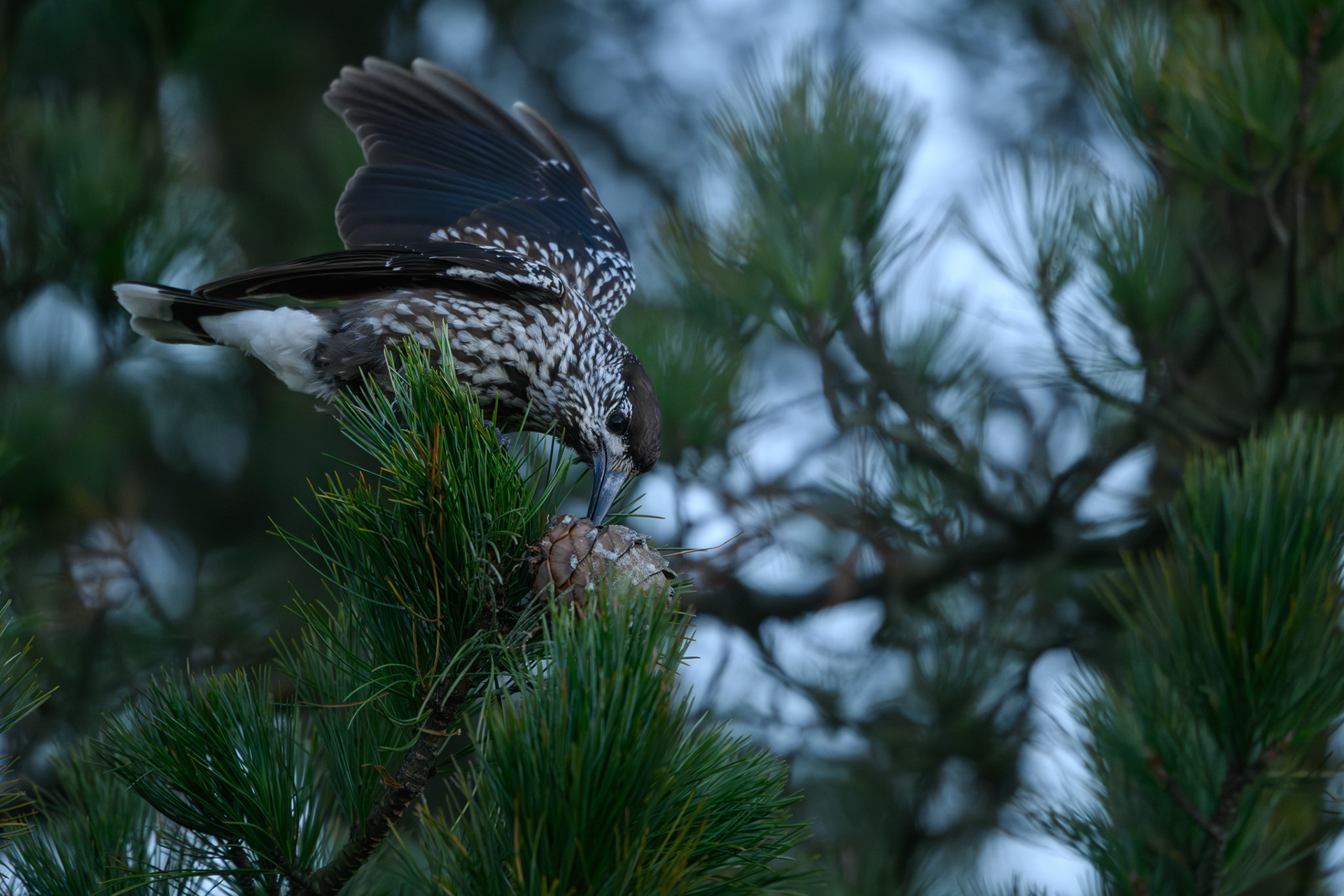 En dag i oktober plingade det till i telefonen, i det lokala fågellarmet stod det "Nötkråka under cembratallarna vid vattenverket". Efter två år hade en lokal "kändis" dykt upp igen. Under hösten kommer oftast en, ibland flera nötkråkor för att samla frön från de 6st cembratallar som finns vid vårat lokala vattenverk, tyvärr är det tillträdesförbud på området så man får fotografera genom ett gallerstaket, men detta verkar nötkråkan förstå och är totalt obrydd om att det står någon med stort objektiv och fotograferar.