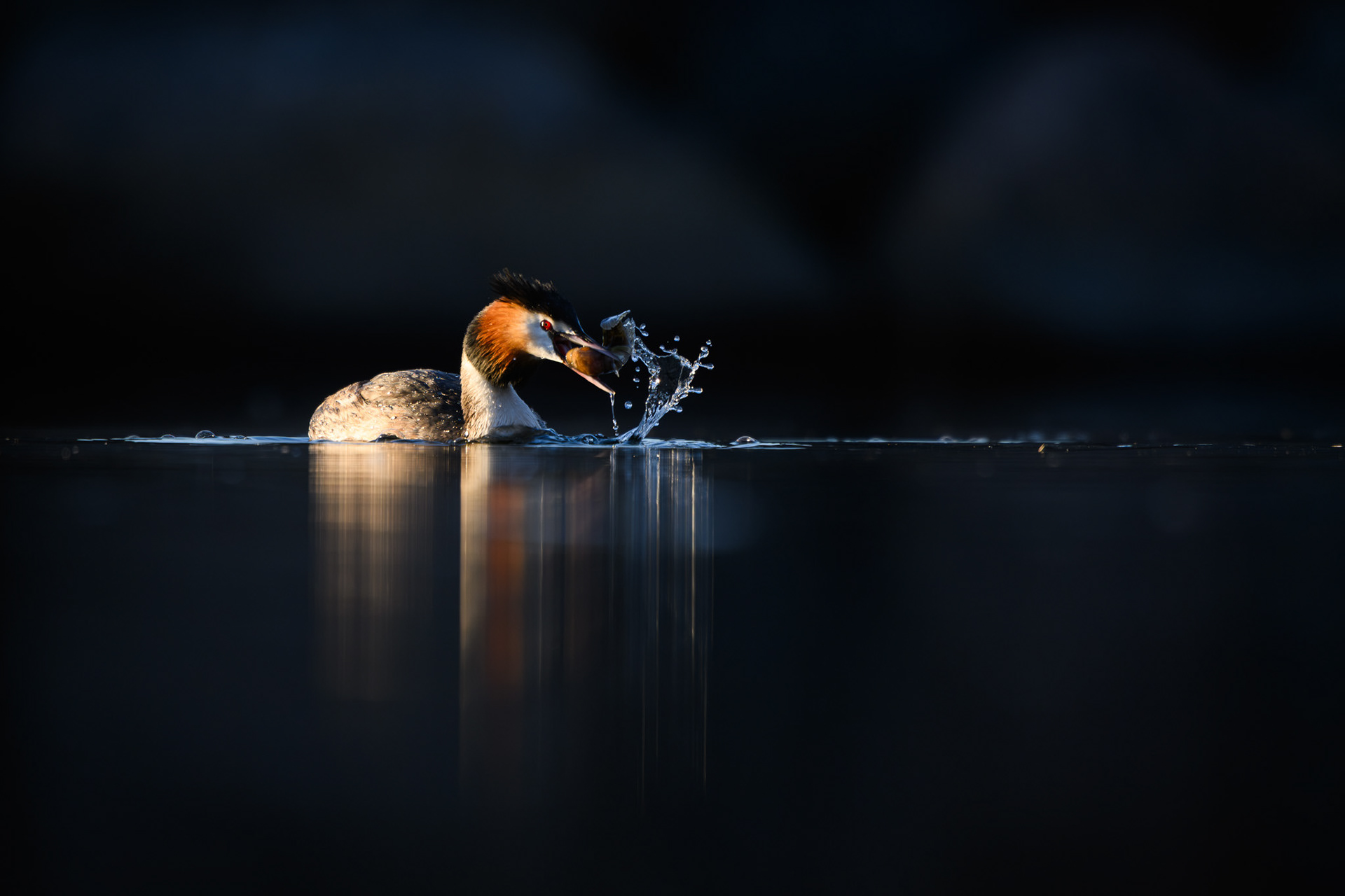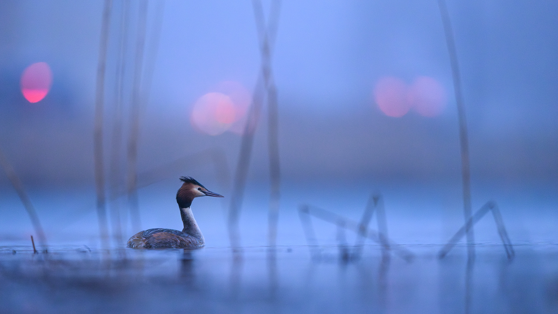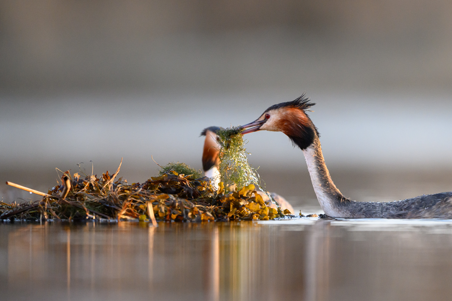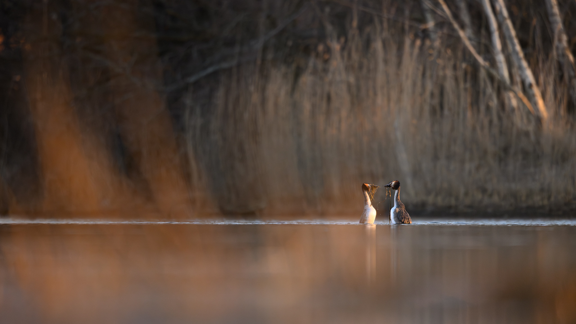 Mot mars till var det dags att dra på sig vadarstövlarna och ge mig ut till den "vanliga" viken vid Ängöleden, centralt i Kalmar. De första paren av skäggdopping har återvänt och har börjat hävda revir. Även här har jag en drömbild av sjögräsdans i motljus, något jag inte lyckats med än. Under våren såg jag minst 7st spel, men antingen är jag eller fåglarna fel positionerade för att få till just den där önskvärda bilden.