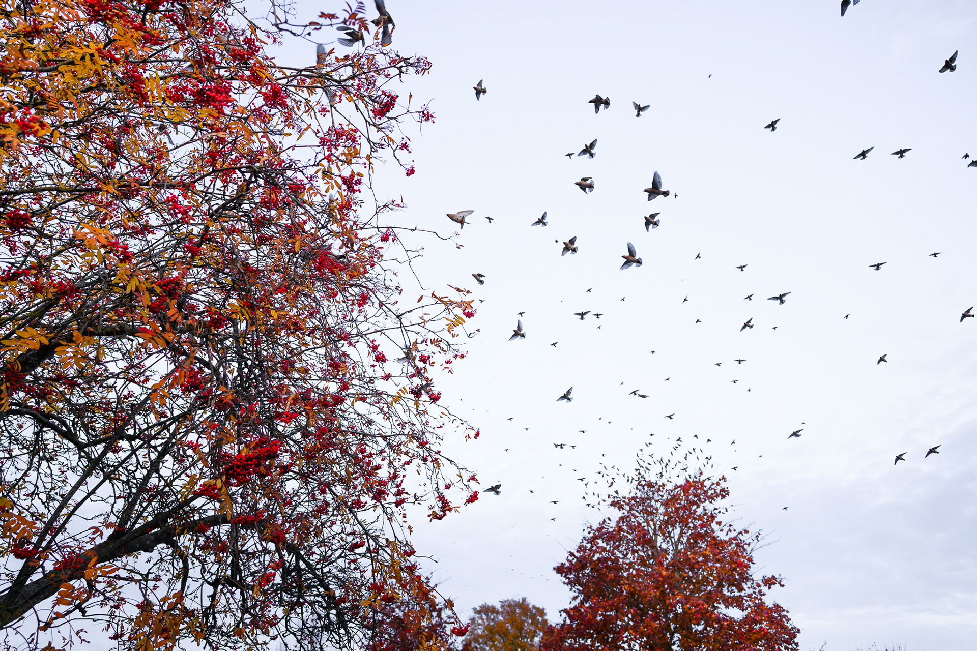 Efter detta verkade denna flock enbart att växa i storlek, under de sista dagarna i oktober och början av november var det säkert upp mot 800-1000 individer som rörde sig. Träd som såg ut att ta flera dagar att tömma rasslade bara till, det regnade löv och när fåglarna väl blev störda och lyfte var trädet nästan tomt.