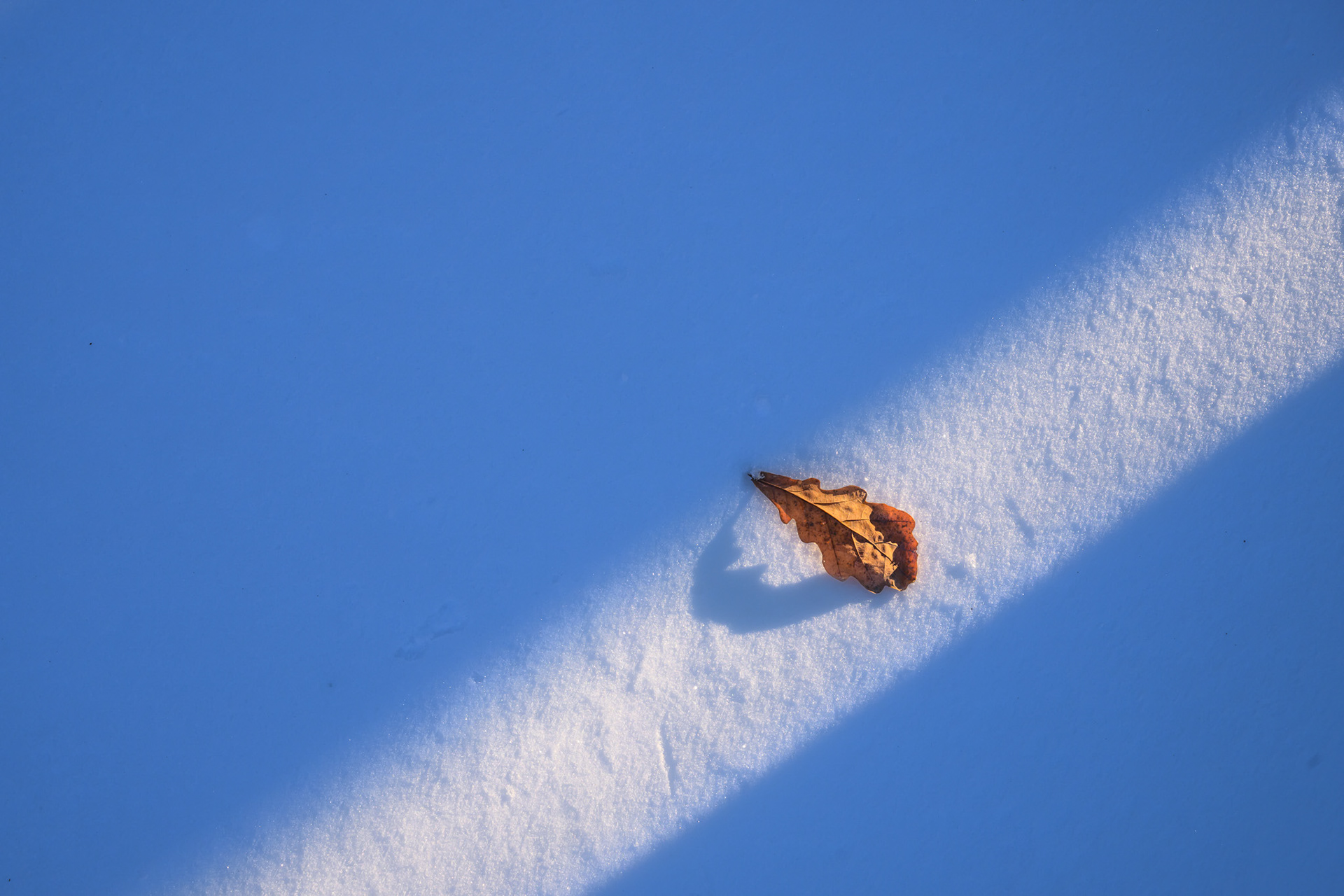 Resultatet av en svag blixt i snöfall, de snöflingorna närmast dig som fotograf lyses upp och ger lite mer djupkänsla