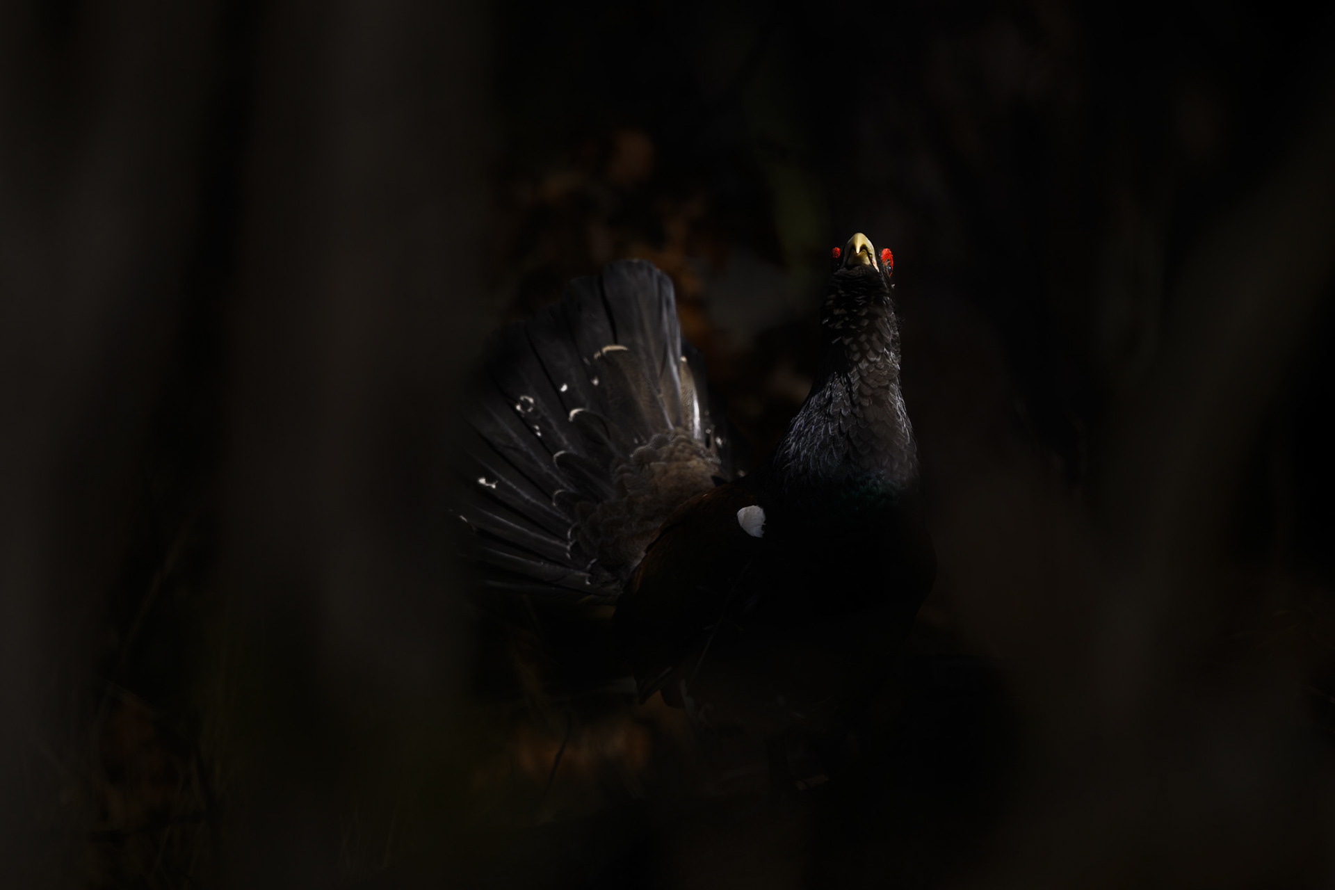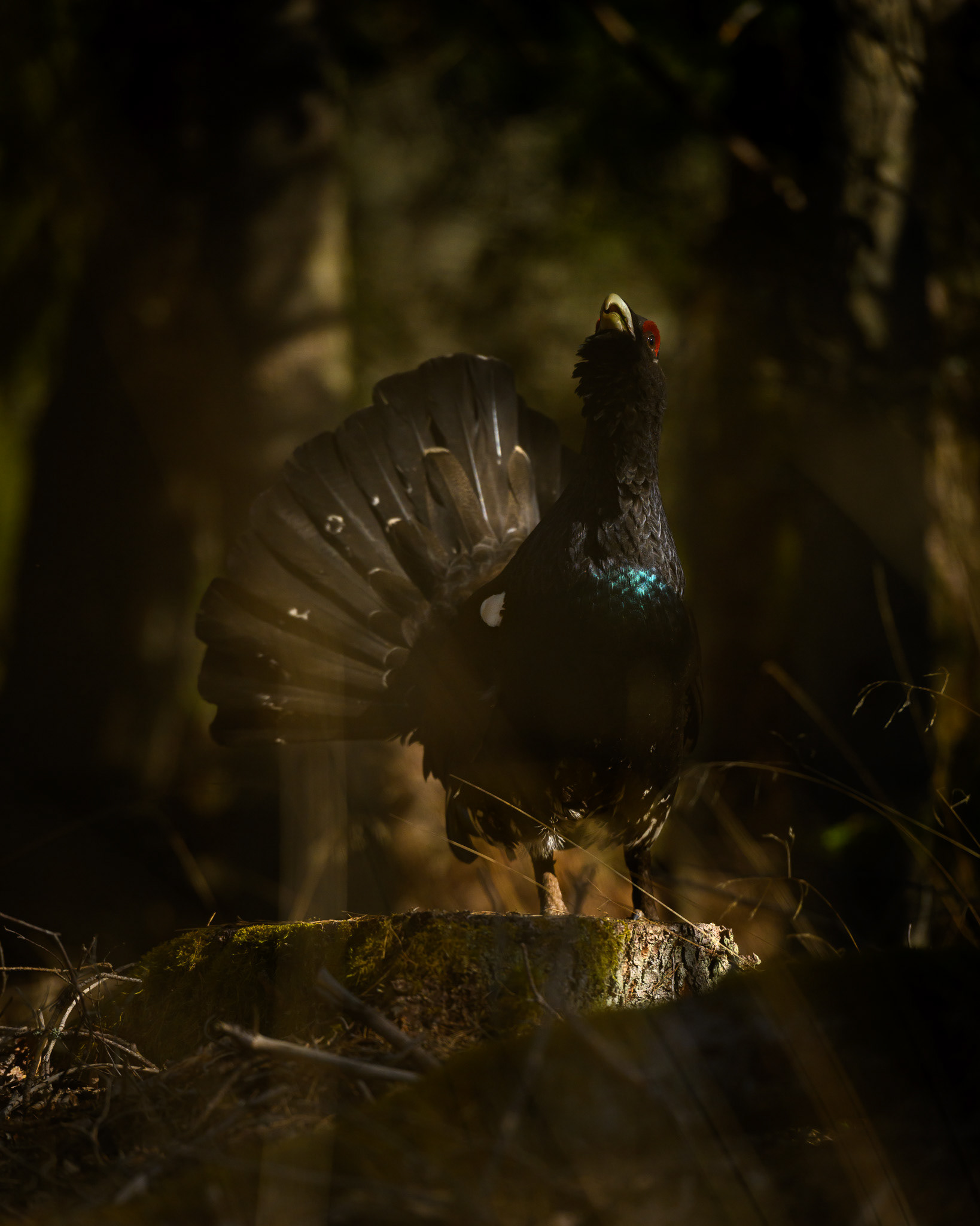 Jag som aldrig har fotat tjäder var snabbt på bollen och visst var den på plats när jag kom. Med stor näbb som man inte vill ha allt för nära fingrarna var det ett mycket spänannde motiv att jobba med och röra sig runt. Stor respekt krävdes men väldigt roligt att få se. Tyvärr hade jag enbart en eftermiddag där i lite väl hårt ljus, men ytterligare ett kryss på min långsamt växande lista. Framförallt en fantastisk naturuppelvelse 😃