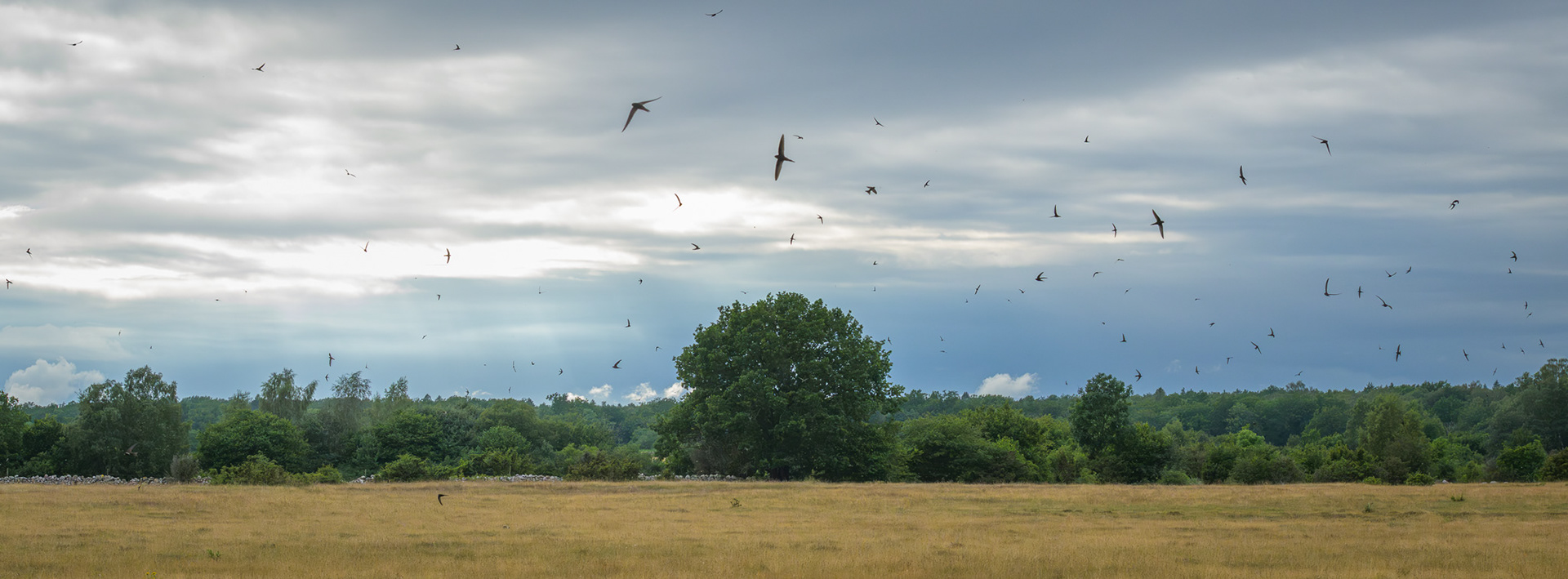 På väg hem från Seby läge efter ett misslyckat vadarförsök stannade jag till vid ovan nämnda gårdby för att leta fjärilar. Utan någon större framgång började det allt efter som trilla in fler och fler tornseglare och svalor, jagandes på låg höjd. Det visade sig att flygmyrorna svärmade direkt efter regnet. Till slut stod mitt i flocken och det var helt klart en av de häftigaste naturuppevelserna jag har varit med om.